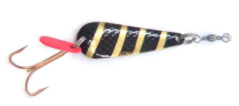 painted and lacquered. Glimmy 7 gram Zebra with treble hook.