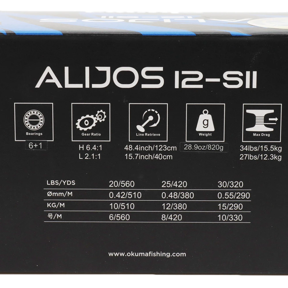 Okuma Alijos 12 Nett 2-Speed Lever Drag OH Boat Reel Specifications: