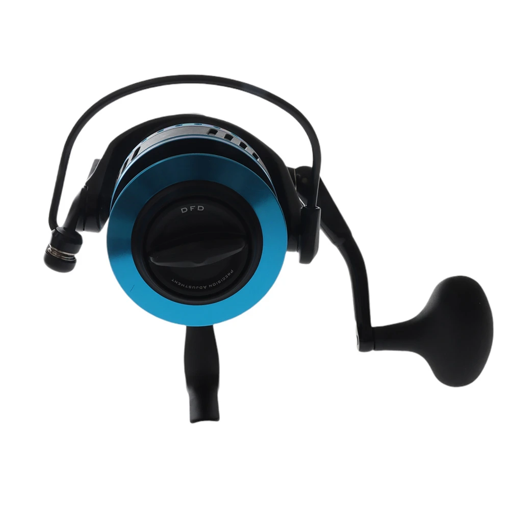 The Okuma Azores XP 14000 Spinning Reel begins with proven power features including die-cast aluminium body, side plate and rotor, machine cut pinion gear and the Okuma Dual Force Drag system that utilises a traditional top drag stack in concert with an oversized Carbonite drag washer beneath the spool to increase high-end drag output as well as spool stability under load.