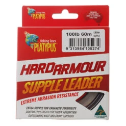 The new Platypus Hard Armour Supple Leader delivers increased knot strength and up to 20% more strength and abrasion resistance than competing brands. Made in Australia, this leader is extra supple and sensitive for increased action in baits and lures.